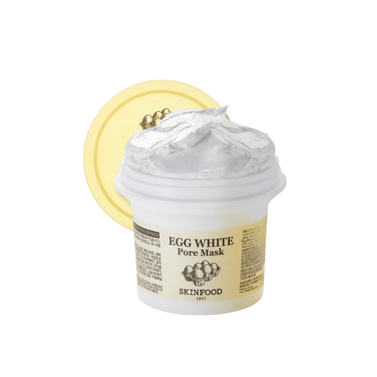 SKINFOOD Egg White Pore Mask es una mascarilla exfoliante enriquecida con arroz blanco, brinda hidratación a la piel y ilumina el tono de piel.